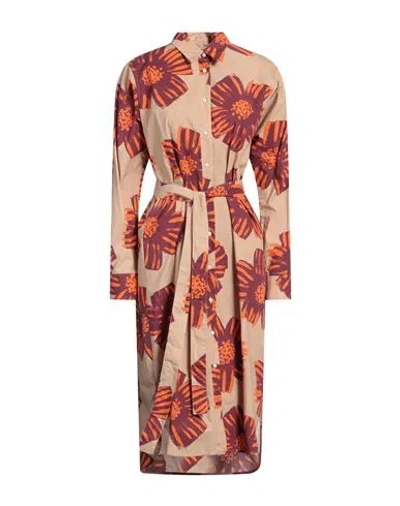 Woman Midi Dress Mauve Size L Viscose In Purple