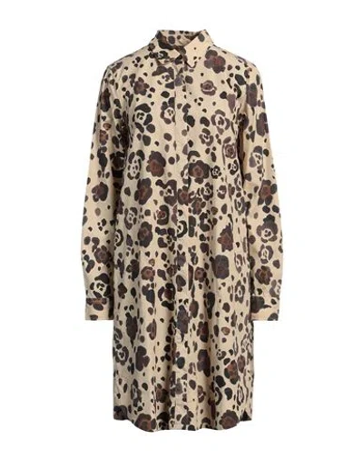 Woman Mini Dress Sand Size M Cotton In Brown
