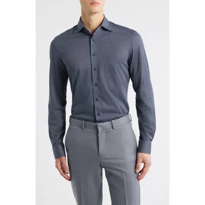 Modern Fit Geometric Print Non-iron Cotton Dress Shirt In Blue