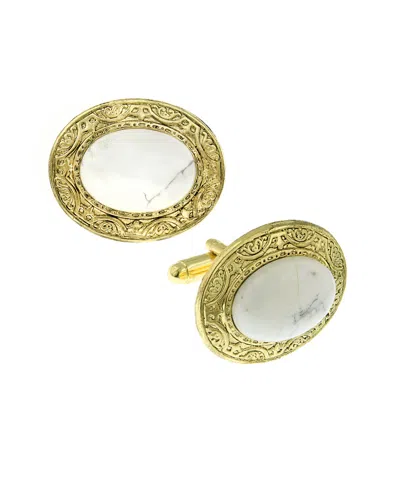 Jewelry 14k Gold Plated Semi-precious Howlite Oval Cufflinks In White