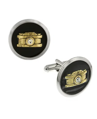 Jewelry Silver-tone And 14k Gold-plated Enamel Crystal Camera Cufflinks In Black