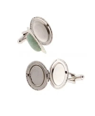 Jewelry Silver-tone Semi-precious Aventurine Oval Cufflinks In Green