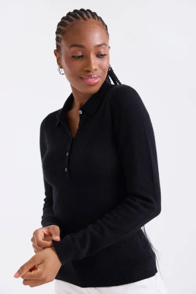 Amaya Long Sleeve Button Polo Top In Black