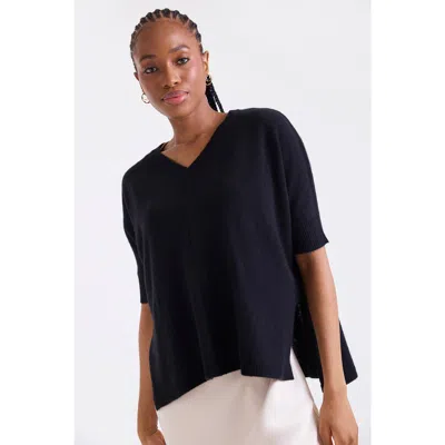 Venetia Vee 3/4 Sleeve V-neck Jumper In Black
