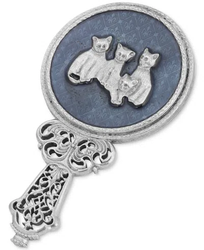 Pewter With Amethyst And Calloy Sapphire Stones Hand Mirror In Silver-tone