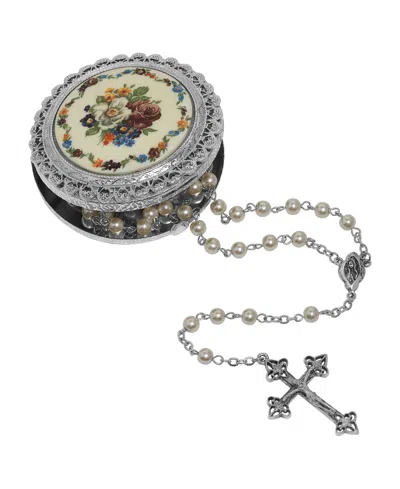 Imitation Pearl Rosary With Floral Box In White