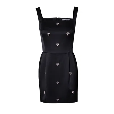 Women's Ace Crystal Hand-embellished Skater Satin Mini Dress - Black