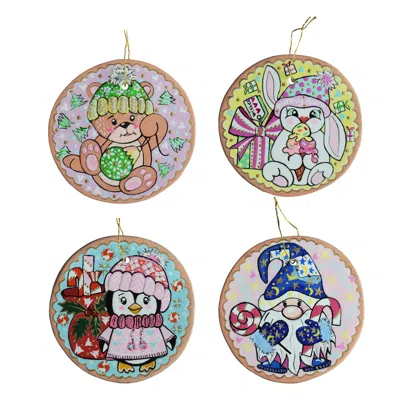Dalgona Modelling Clay Christmas Tree Ornament - Set Of Four In Multi