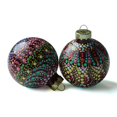 Bohemian Hand-painted Bauble Christmas Ornament Set Of Two - Multicolor