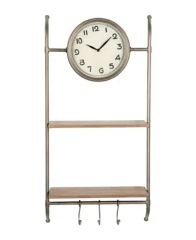 Creative Co-op Wall Clock With Shelves And Hooks In Bronze
