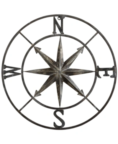 Metal Compass Wall Decor, Distressed Silver-tone In Distressed Brown