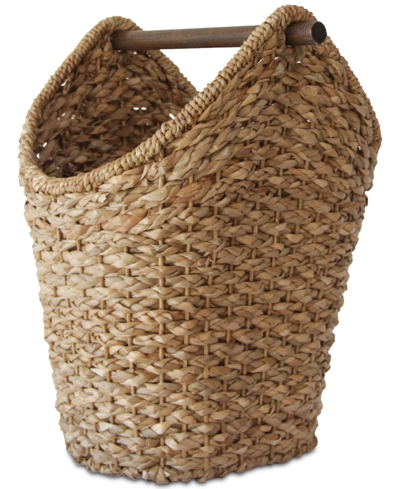 Braided Oval Tissue Basket With Wood Handle In Brown