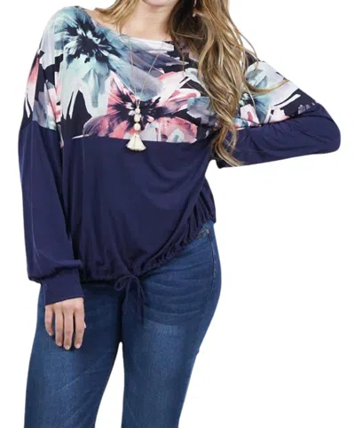 Print Color Block Drawstring Top In Navy-mauve In Multi