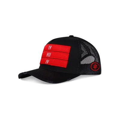 Men's Black / Red / White 474 Red 3 Bars Trucker Hat - Black In Multi