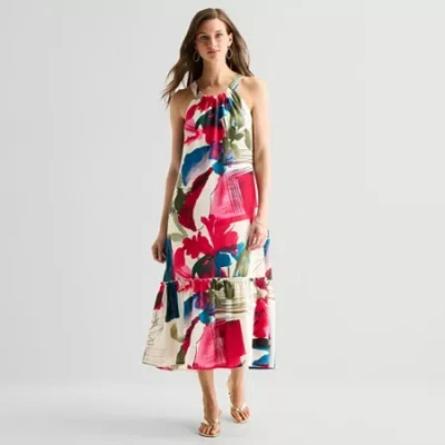 Womens Sleeveless Midi Abstract Shift Dress In White