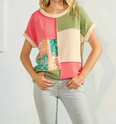 Floral Contrast Patchwork Top In Blush In Pink