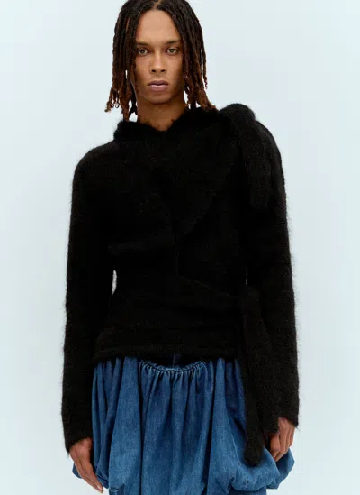 Mohair Tied Hooded Sweater In Black