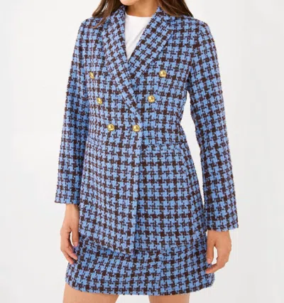 Calvin Tweed Blazer In Blue Brown Houndstooth