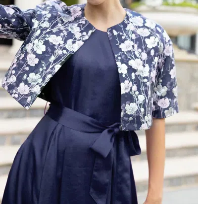 Mimi Shrug In Silver Stems Navy In Multi