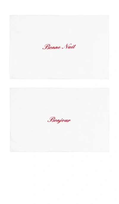 Bonjour & Bonne Nuit Pillowcase Set In White