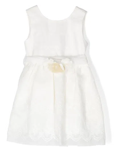Kids' Floral-appliqué Pleated Dress In Yellow