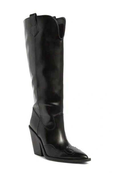Zahra Western Knee High Boot In Black