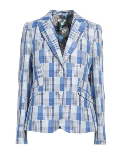 Woman Blazer Azure Size 6 Linen, Cotton In Blue