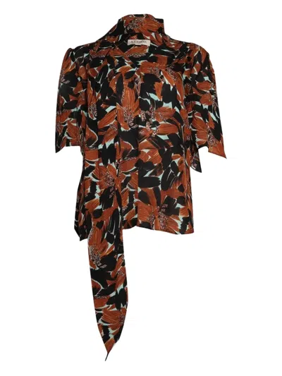 Tie-neck Floral-print Blouse In Brown