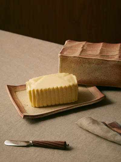 Hand-thrown Ceramic Faceted Butter Dish In Brown