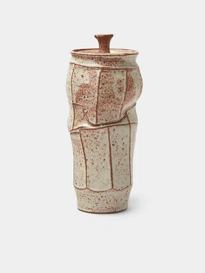 Hand-thrown Ceramic Faceted Jam Jar In Brown
