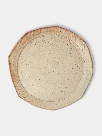 Hand-thrown Ceramic Faceted Serving Platter In Brown
