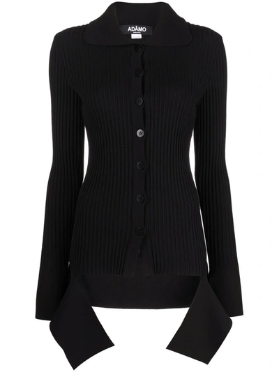 Cut-out Detail Long-sleeve Ribbed Cardigan In 黑色