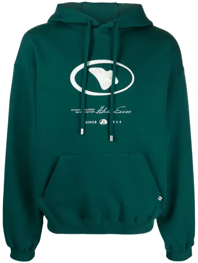 Logo-print Cotton Hoodie In Green