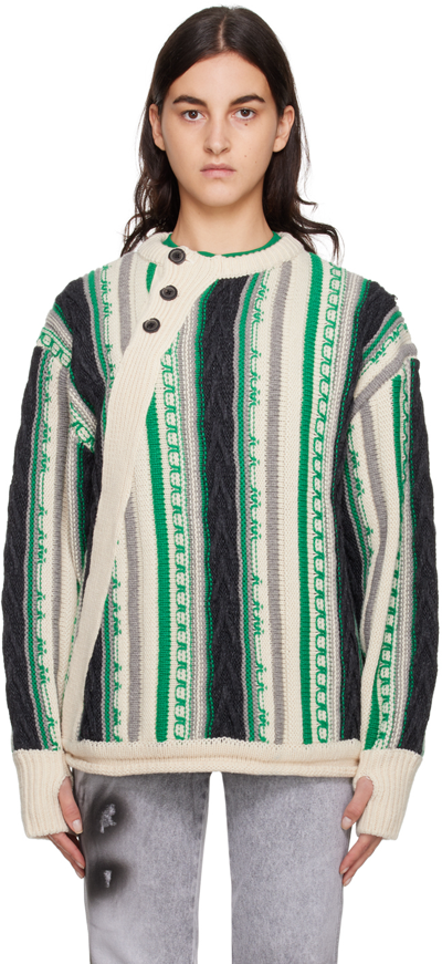 Green Buttoned Sweater In Ivory