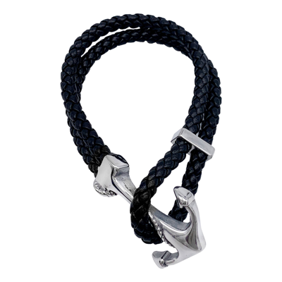 Water Resistant Leather And Anchor Hook Bracelet Silver
