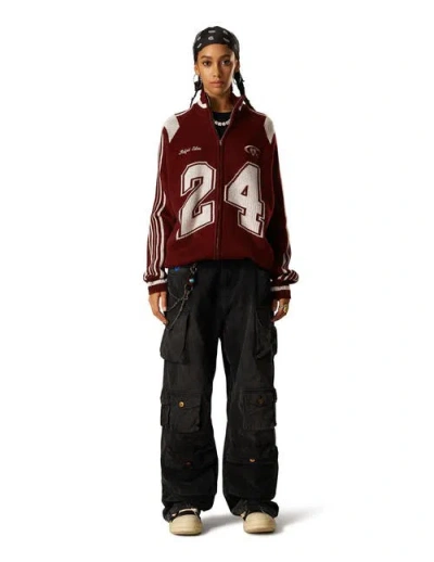 24 Jacquard Zip Up Cardigan In Burgundy