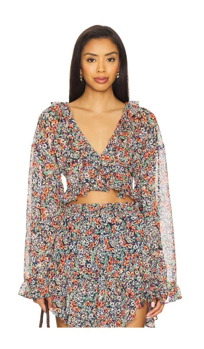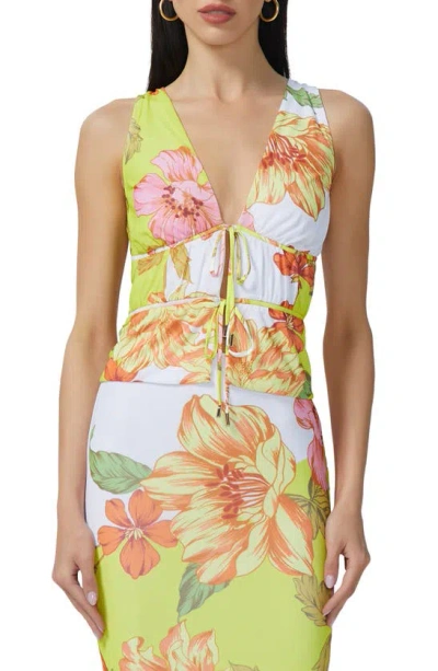 Mirna Tie Front Sleeveless Top In Color Block Floral