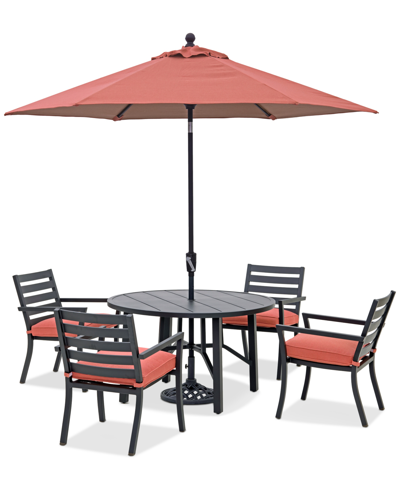 Astaire Outdoor 5-pc Dining Set (48" Round Table + 4 Dining Chairs), Created For Macy's In Peony Brick Red