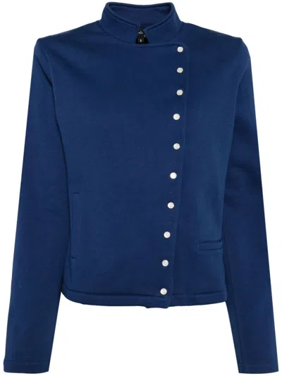 Swing Short-sleeved Cotton Snap Cardigan In Blue
