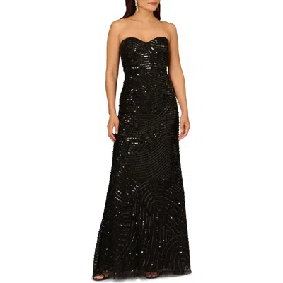 By Adrianna Papell Bow Sequin Strapless Gown In Black