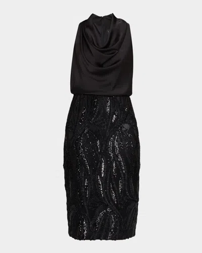 Bonded Crepe Mixed Media Cocktail Dress In Black