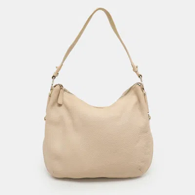 Beige Leather Hobo In Neutral