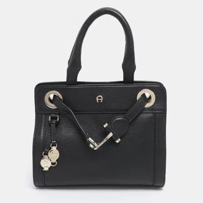Black Grained Leather Cybill Tote
