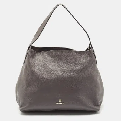 Grey Leather Zip Hobo In Gray