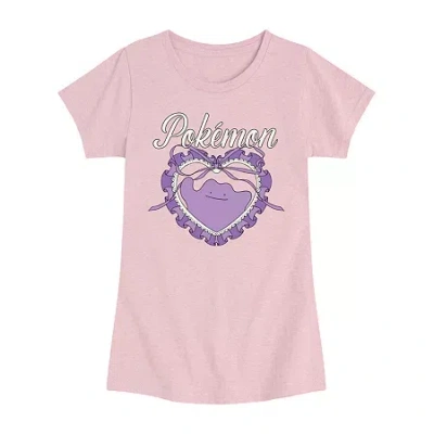 Big Kid Girls Round Neck Short Sleeve Regular Fit Pokemon Graphic T-shirt In Pink