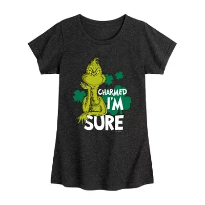 Charmed Im Sure Big Kid Girls Crew Neck Short Sleeve Grinch T-shirt In Black