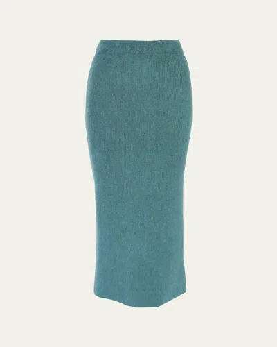 Brushed Mohair Pencil Midi Skirt In Teal