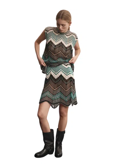 Mini Skirt In Jacquard Cotton Knit In Dark Green
