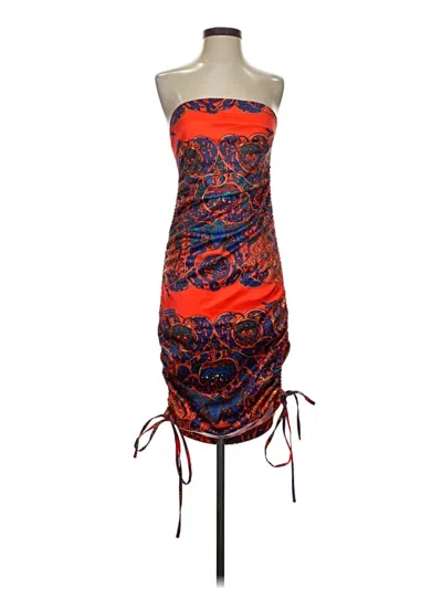 Pre-owned Strapless Knee-length Dress In Orange