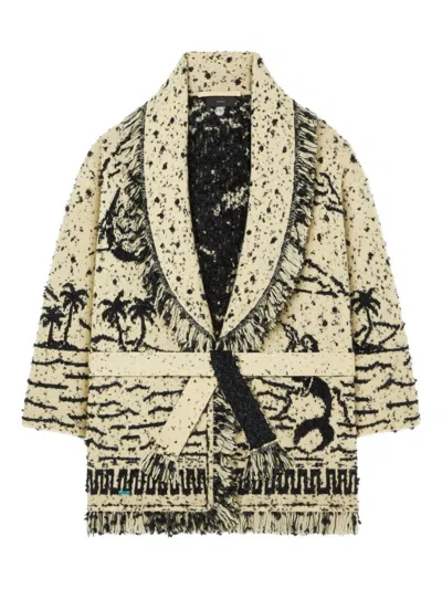 Created by Nicolò Oddi in dialogue with his sister and muse Carlotta, luxury Italian label Alanui is defined by its colorful jacquard knitwear that pays homage to Indian-American iconography. The perfect travel companion, each oversized cardigan is handcrafted from 980 grams of Cariaggi cashmere and can take up to 11 hours to make. Don’t miss the new hooded styles and cable-knit sweaters in our edit.